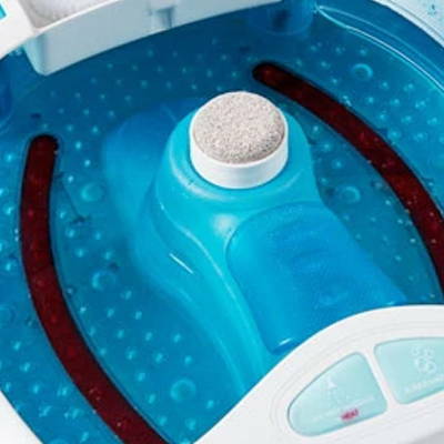 - Pedicure center with 3 attachments: pumice stone, cleansing brush, and massage roller